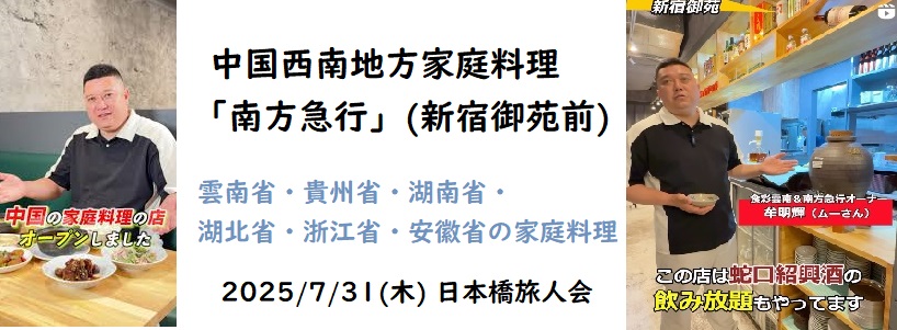 2025/7/31【旅の食事会】中華西南地方家庭料理「南方急行」